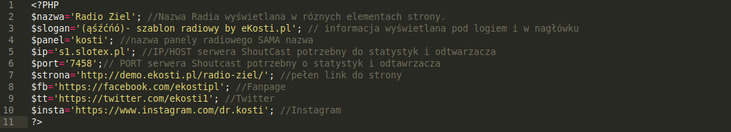 inc/ustawienia.phpWszystkie zmienne opatrzone są odpowiednim komentarzem.